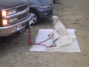 夜は車の中で親子3人とエー&ビー!2頭のおてんば娘は私たちを